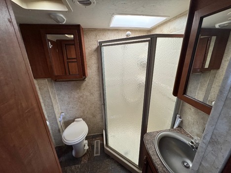 2010 Jayco Recon 40D Toyhauler 5th wheel camper, 3 axles, 40’ Toy hauler, 2 owners, first owner kept this in a garage, 2nd owner kept this covered. Current cover had a tear in it and he gave us a brand new cover he bought for this still in its box. garage is 12’ long x 8’2in wide, Tuff-ply rubberized floor liner, 2,500 lbs capacity tie-downs, beaver tail ramp, and tool storage, bunk beds each 59in wide x 88in long, electric bunk beds, rear screen door, 40in Samsung flat screen on a swivel mount in the garage, ½ bath in garage, 12 D ring in floor tie downs, original throw rug that fits the garage area perfectly. Sliding glass doors for the entrance into the main living area, loft beds over the kitchen and garage area, (2) 30in wide x 80in long matres in the loft, large storage area and more cabinets and tv hook up in the loft area. Kitchen has a U shaped dinette table, L shape kitchen area, Corian counter tops, double bowl stainless steel sink, Atwood 3 burner stove and oven, over range hood vent, Dometic microwave, Norcold fridge and freezer, 32in Insignia TV with storage behind the TV, 2 recliners with cup holders, Sonay AM/FM/CD/DVD stereo, Sony Xplod speakers in the ceiling, Ceiling fan, large storage and pantry cabinets. Master bathroom has a large corner shower with glass doors, vanity sink with a mirrored storage cabinet, toilet with wash down sprayer. Master bedroom has a 60in wide x 80in long master queen bed, under bed storage, safe under bed, large front master closet with hanging space and drawers, washer / dryer hook up in closet, 3 drawer dresser at foot of bed, 1 Coleman Mach ducted AC unit, 16’ electric awning, exterior speakers, exterior 110v outlets, 2 batteries with a shut off switch, 2 exterior entrances, (1) 30lb propane tank, exterior shower, 12 gallon propane and electric hot water heater, 50A electric, ST235/85R16 tires, 8’ wide x 94in high rear garage door, Trailair air ride pin box, spare wheel and tire mounted under the rear deck. Very clean! 18000lbs GVWR, 3900lbs CCC, 14100lbs empty weight, 6000lbs each axles (3 axles), 3585lbs hitch weight, 148 gallon fresh water tank, 63 gallon gray water tank, 64 gallon black water tank, 30 gallon fuel tank, Polar Barrier 4 season insulation package, New full RV cover.