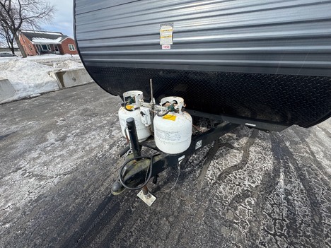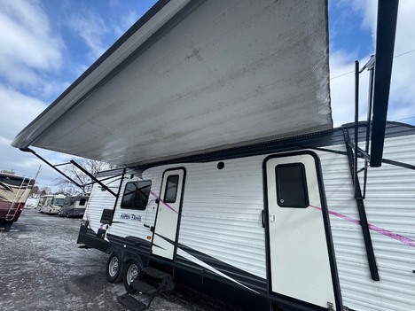 2015 Aspen Trail by Dutchmen 2720RKS, 34’ travel trailer, front master bedroom with a 60in wide x 77in long queen bed, under bed storage, 1 wardrobe closet on each side of bed, walk through bathroom with a standup shower, sliding glass doors on shower. Living room has a trifold sofa bed, dinette table and bed, (2) rocking recliners, Insignia 28in TV, Furrion AM/FM/CD/DVD player. Kitchen has an L shape counter, Norcold electric and propane fridge & freezer, Atwood 3 burner stove and oven, over range hood vent, High Point microwave, large double bowl stainless steel sink, linoleum throughout, 6 gallon Atwood propane and electric hot water heater. 18’ electric awning with LED lights, exterior speakers, double entry doors, front pass-through storage compartment, ST225/75R15 tires, 2022 date codes, Atwood furnace, exterior shower, spare wheel and tire on a bumper mount, 30A electric, 1 slide, no topper, (2) 20lb propane tanks, manual tongue jack, 2-5/16in ball, electric brakes, 4 manual stabilizer jacks. 34’ long, 6536lbs empty weight, 46 gallon fresh water tank, 42 gallon gray water tank, 42 gallon black water tank, 30000BTU furnace, 13500BTU AC, 9680lbs GVW, 4400lbs axles. This had a leak in the roof and slide out roof at one time. both fixed, no soft wood in the roof or slide out roof.